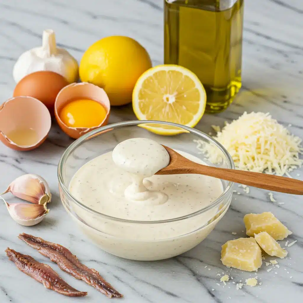 - Anchovy Paste – A milder alternative that blends seamlessly into the dressing.